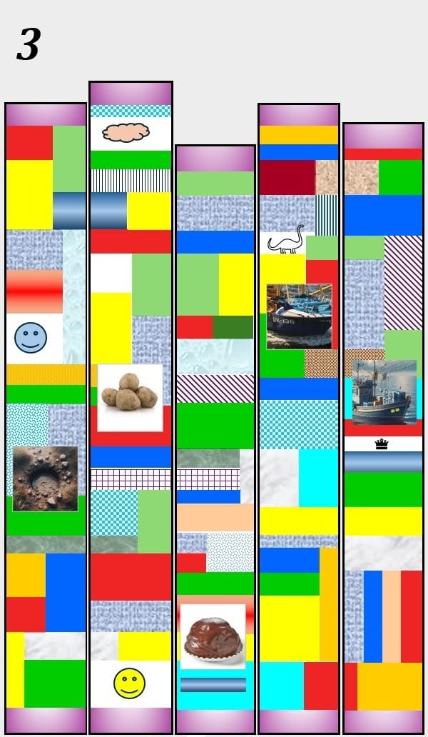 Zoek deze 5 blokken bijeen en plaats ze in de juiste volgorde in de gaten op het bord.